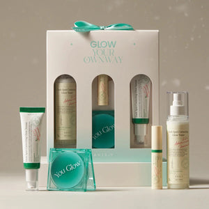 Celebrate in style with our signature mint-hued gift box, elegantly finished with festive ribbons. Whether it’s a gift for someone special or a treat for yourself, the Glow Your Own Way set captures the joy and magic of the holidays.